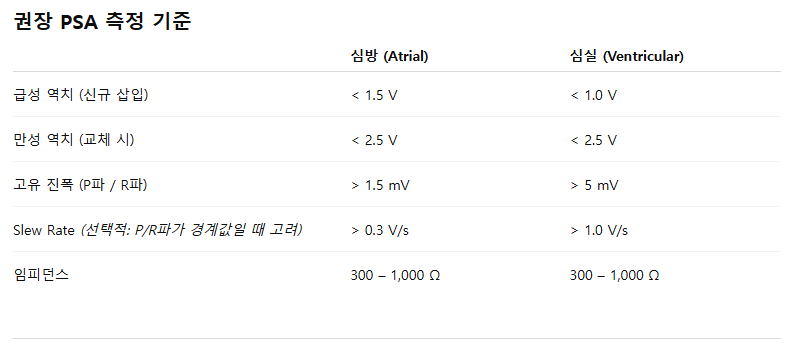PSA = Pacing System Analyzer 👉 페이싱 시스템 분석기