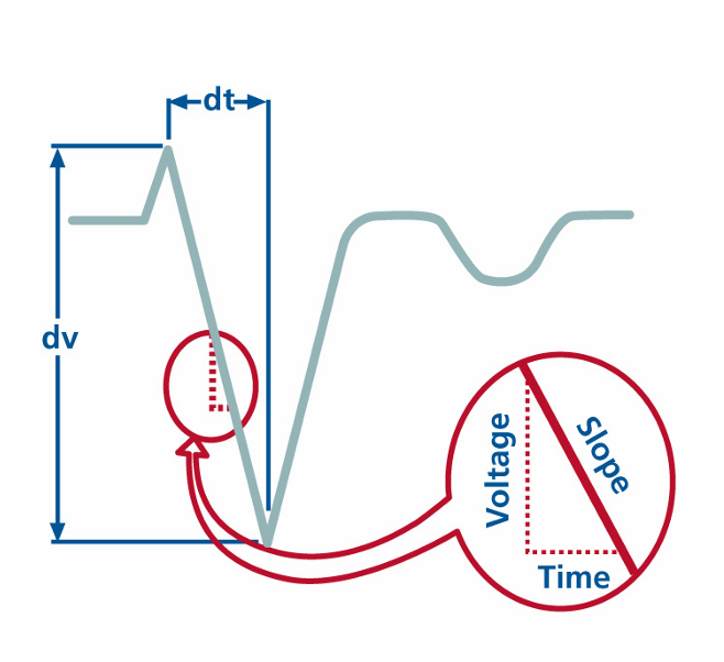 - 즉, 전압-시간 그래프에서 가장 급격히 변하는 구간의 기울기(slope)