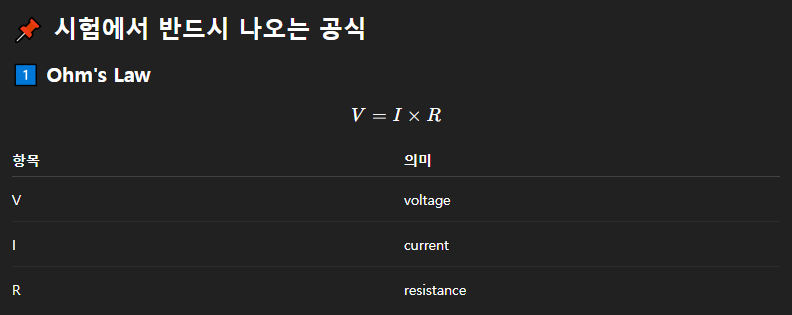 예 (시험 스타일) Impedance = 500 Ω, Current = 5 mA, Voltage = ?